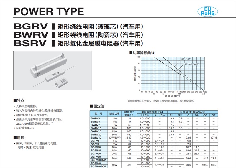 BSRV 矩形氧化金属膜电阻器(汽车用)